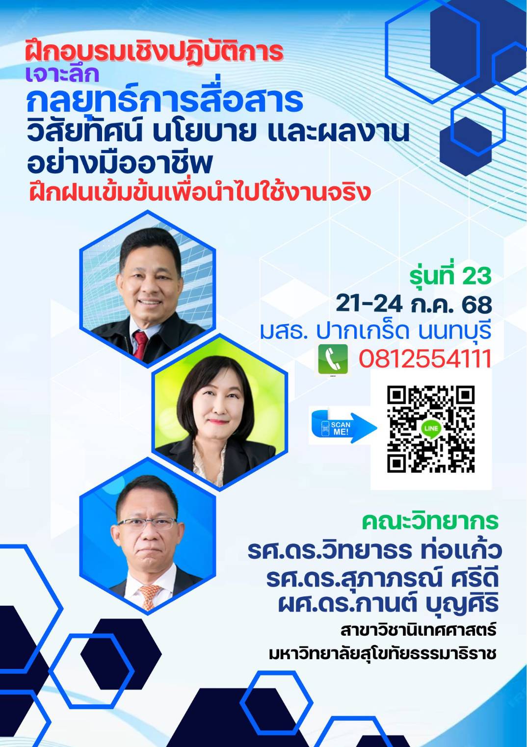 1) การพัฒนาผู้นำทางการเมืองและการปกครองท้องถิ่นด้านการสื่อสาร 6 หน่วยกิต